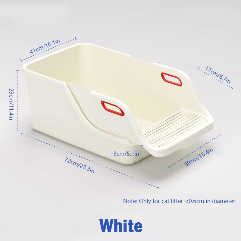 Large Size - Dimensions: L-28.3'', W-16.1'',H-11.4'' ,It is a large cat litter box for large felines, kittens, and high-end felines. The open cat litter bin is designed to provide cats with sufficient space and fast access.